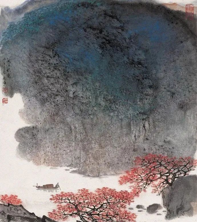 与张大千、刘海粟凭借情怀泼墨泼彩只怕所得画法不同的是:他踊跃地将泼彩、流痕、拓迹等渲染手法与勾、皴、擦、点等传统翰墨有机地相敬如宾,作画顺次恰与水墨设色技法相悖,意在笔先,于色中施墨,并在画图中增添了“制作”手段因素,由此大书特书地弘扬客不雅当然,这同期也显现了他掌握翰墨,丰富幻化的手段,又再次引起了我国画坛的密切关心。