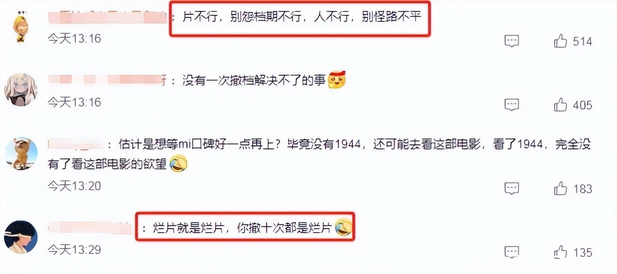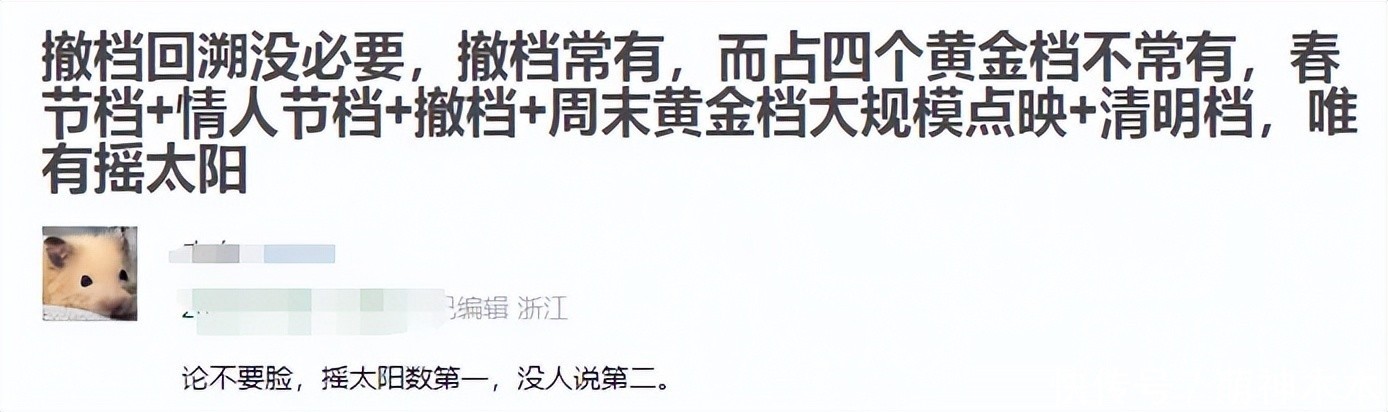 撤档并不是值得冷落的生意手脚,然而像《摇太阳》、《暖锅》这么票房不好就松驰撤档的手脚既不尊重市集也不尊重不雅众,被网友嘲讽:若不雅众不称心电影是否也不错退票?