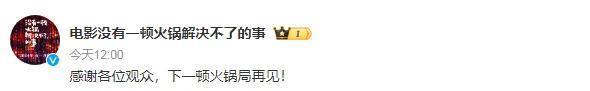 此后,导演丁晟发文感谢民众,清楚“余味无穷,择日再聚”,并共享了一段剧情台词:“莫得一顿暖锅管理不了的事,那淌若管理不了呢,两顿”,对改日的票房似乎充满信心。